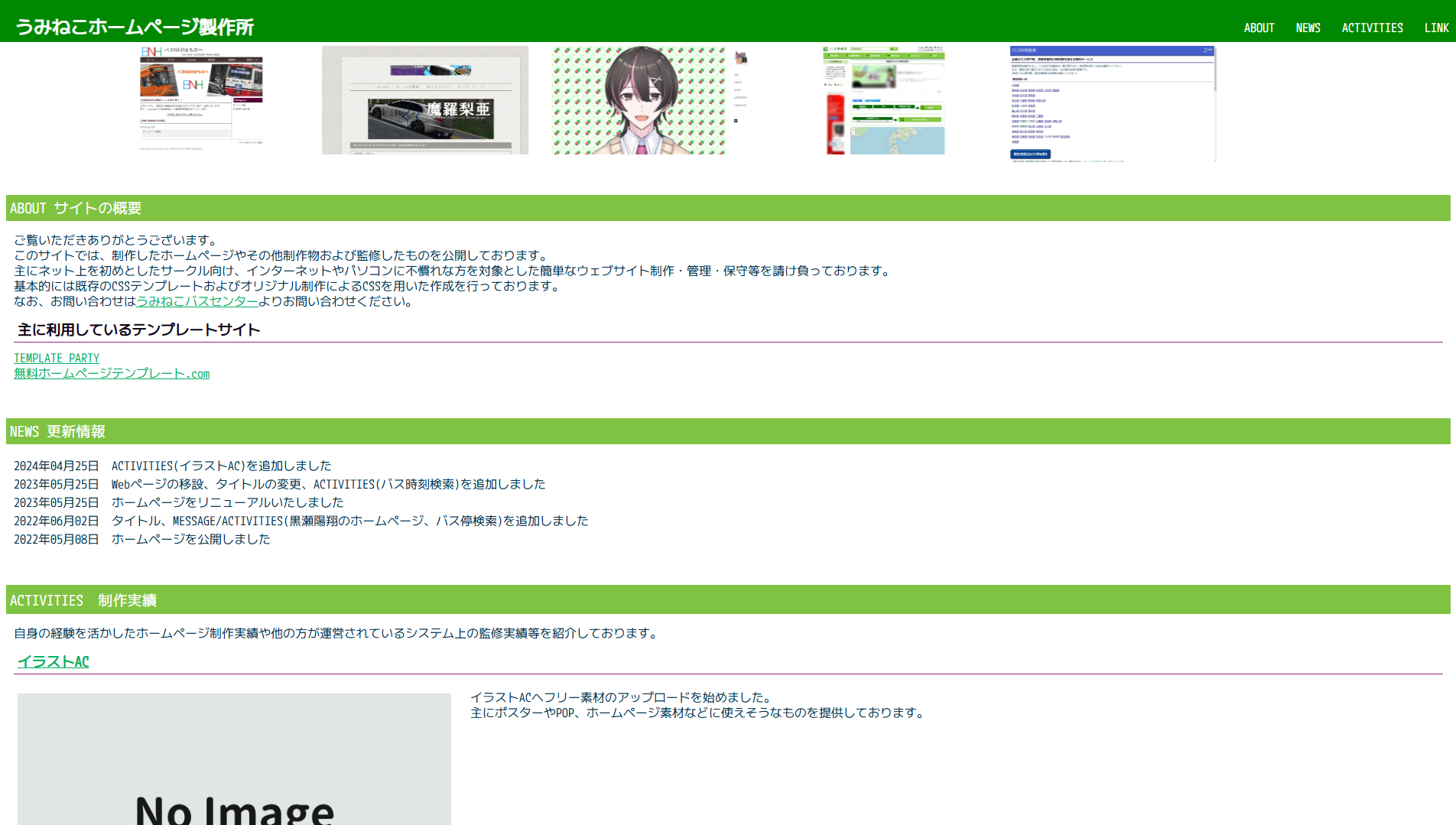 また、長年のサイト運営の経験を活かし、2022年頃より「うみねこホームページ製作所」としての活動も開始しました。2026年より「うみねこバスセンター」から「うみねこホームページ」へ改称した後、窓口を一本化し、ネット上のサークル様やパソコンに不慣れな方向けに、ウェブサイトの制作・管理・保守を請け負っております。